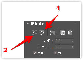足跡の間隔調整/足跡の方向を曲げる
