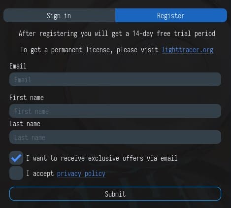 さっそくLight Tracer Renderのブラウザーを下記から起動します。