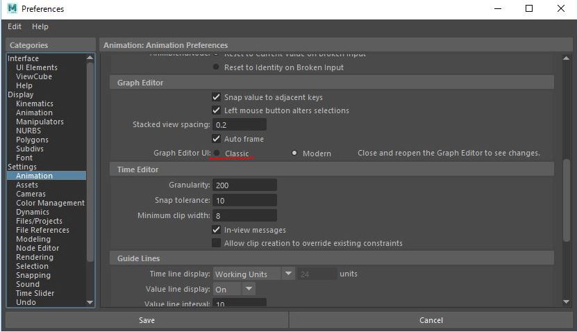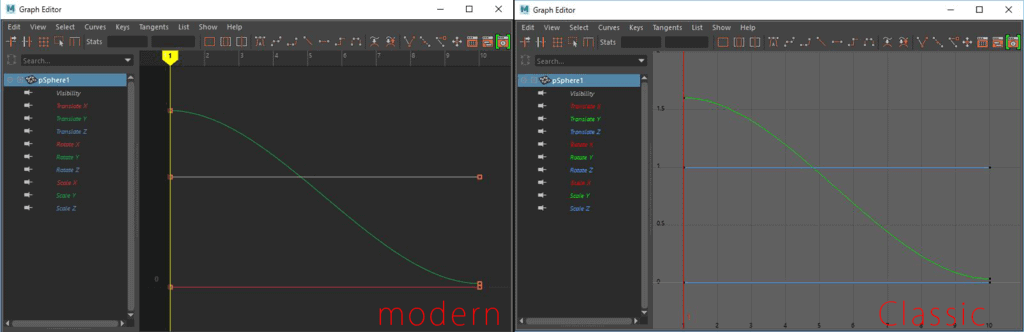 - グラフエディターを立ち上げると、新しいグラフエディターではなく、旧式のグラフエディターが表示される。(設定はModernなのに!)