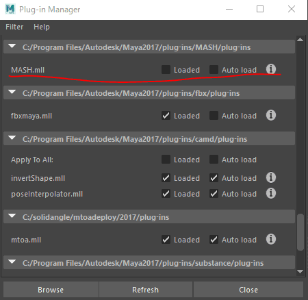 MASH.mllのLoadedのチェックを外します。