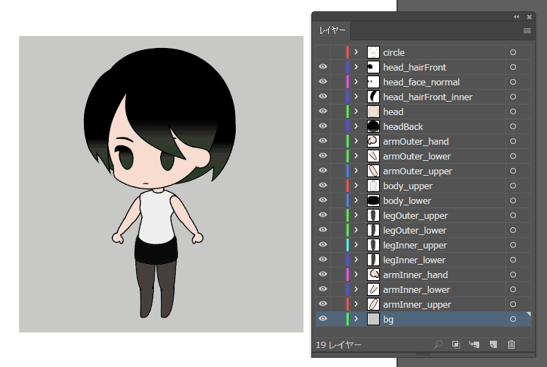 Spineで動くちびキャラをつくるために、Illustratorで描くことで微調整しやすい作画にしています、