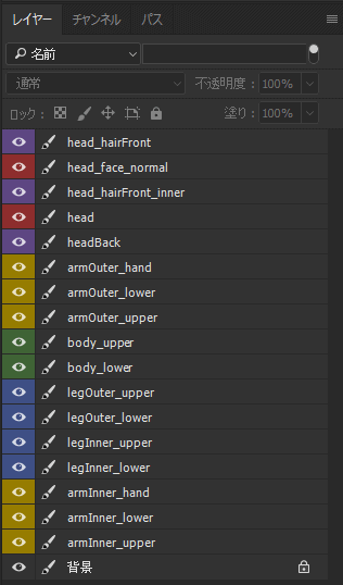 ※レイヤー名の左右は「L」「R」ではなく、手前を「Outer」、奥側は「Inner」としています。