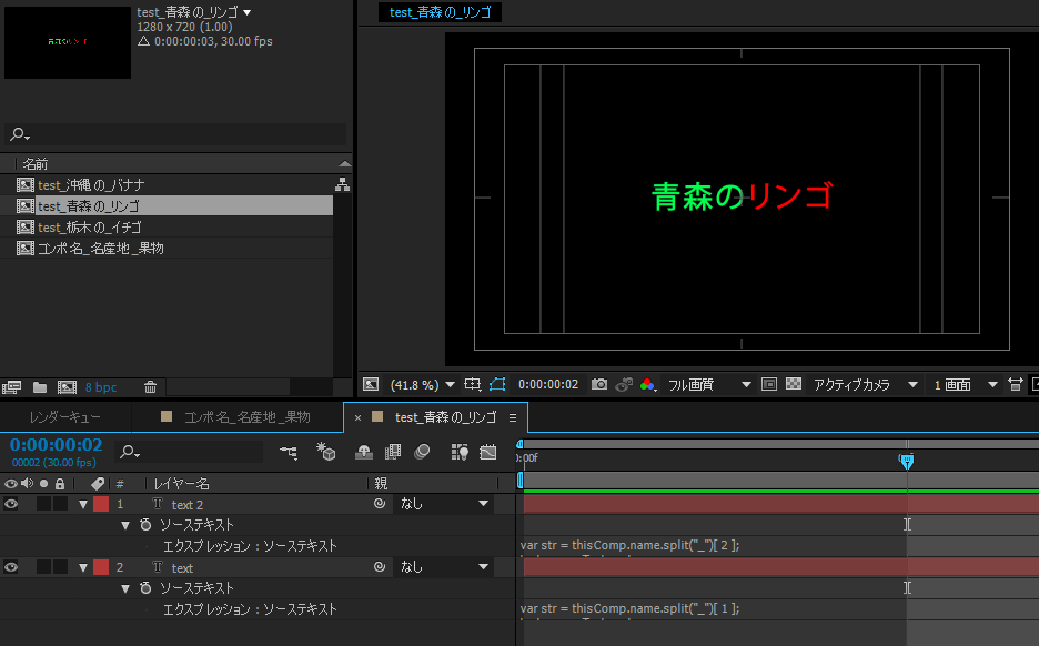 1. コンポ名は「コンポ名_名産地_果物」で作成