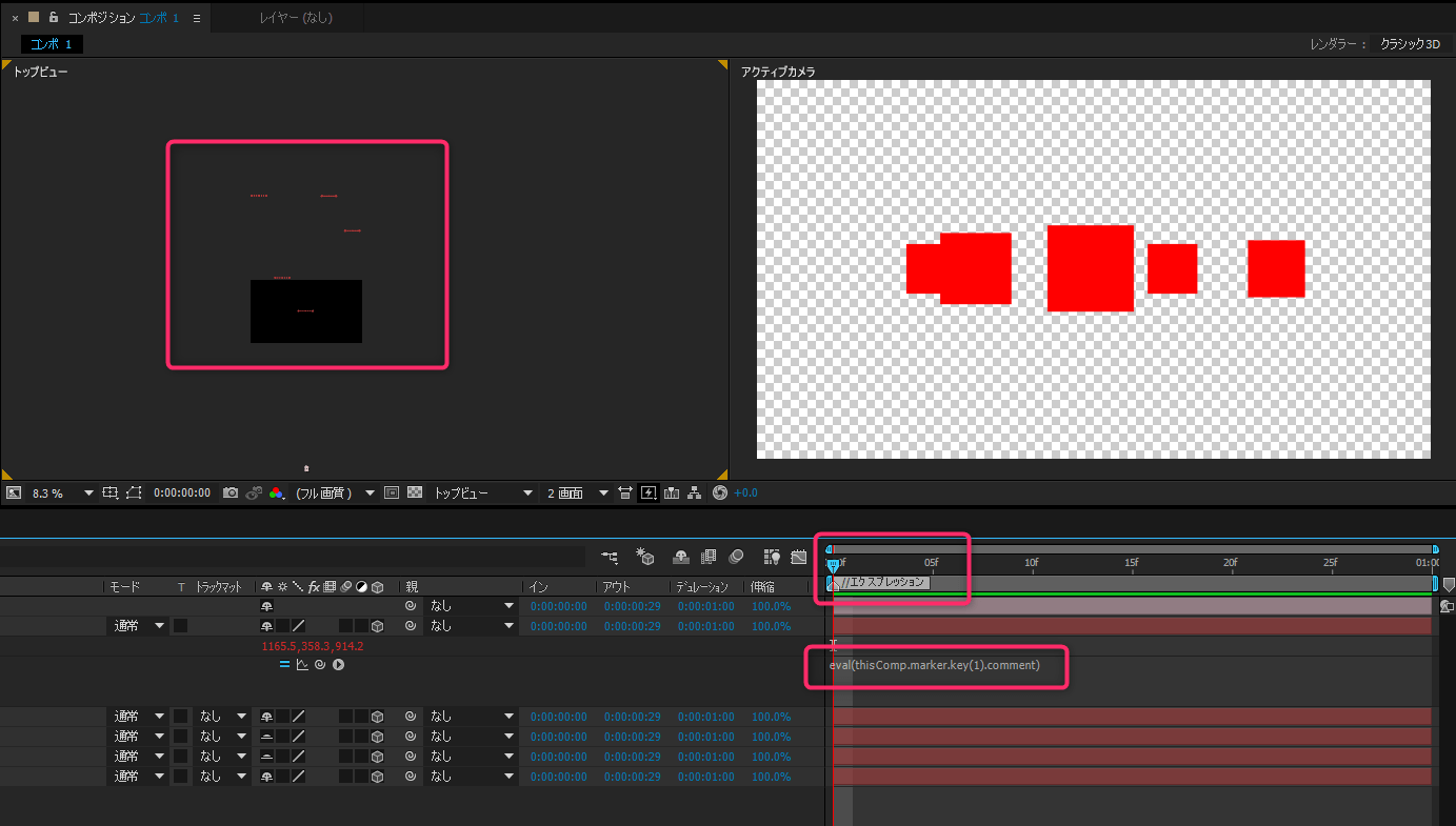 - コンポジションのマーカーコメントに①のエクスプレッションを記述