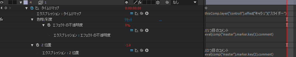 eval(comp("master").marker.key(1).comment)- 「Z位置」にエクスプレッションを挿入