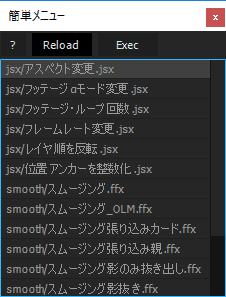 リスト式のスクリプトランチャー「簡単メニュー.jsx」
