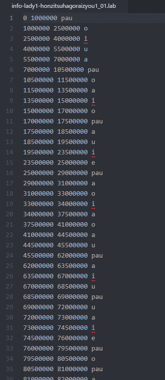※生成された.labファイルはメモ帳などでちゃんと記録されているか確認しておくこと。音声がいけてないと全然データ取れてない結果になります。