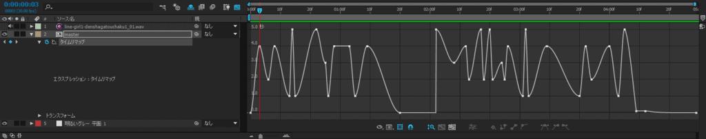 親のコンポジションにタイムリマップをかけます(Ctrl+Alt+T)。タイムリマップに下記のエクスプレッションを挿入します。