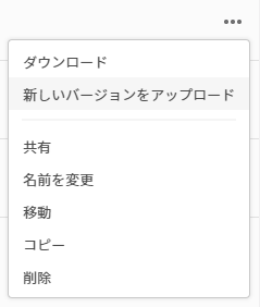 - WEB版での同じ名前のドラッグ&ドロップでのデータの更新は不可、別名でアップロードされます。