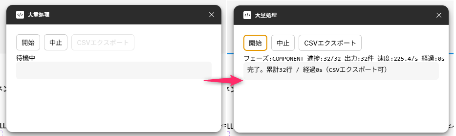 - 数十万行でも処理が止まらず、途中で「中止」も可能