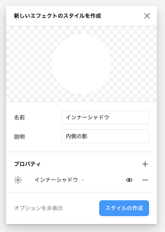 こちらも同様にスタイルの作成ボタンを押すとエフェクトの状態が登録できます。