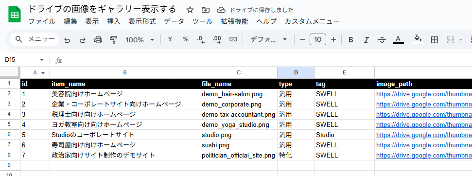 Googleスプレッドシートでドライブ内の画像をサムネ付きギャラリー表示する方法の実装方法