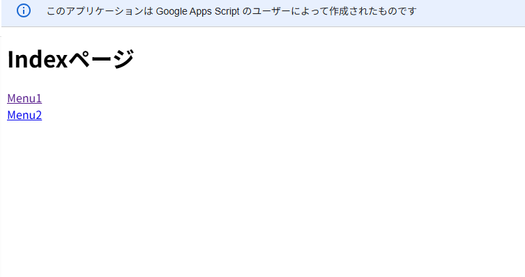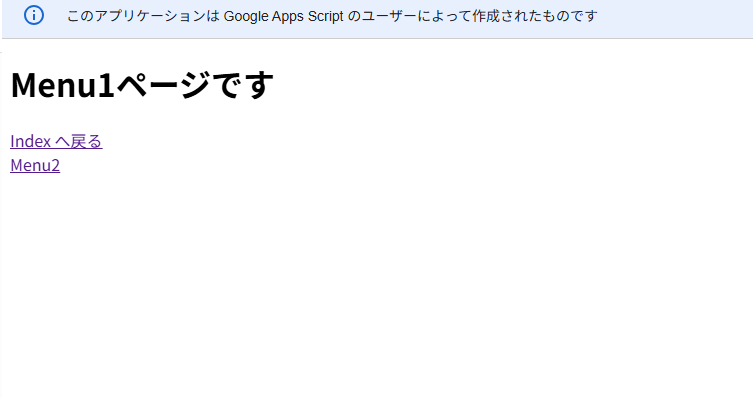 デプロイしたURLの末尾に ?p=menu1 のようにパラメータを付けることで、表示するページを切り替えます。