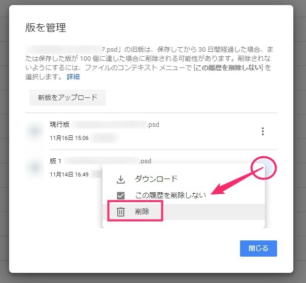 Google Driveの古いバージョンの版データを手動で削除する方法