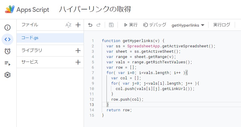この関数は、指定した範囲のハイパーリンクをすべて抽出してくれる自作関数です。