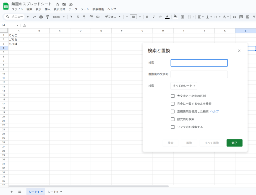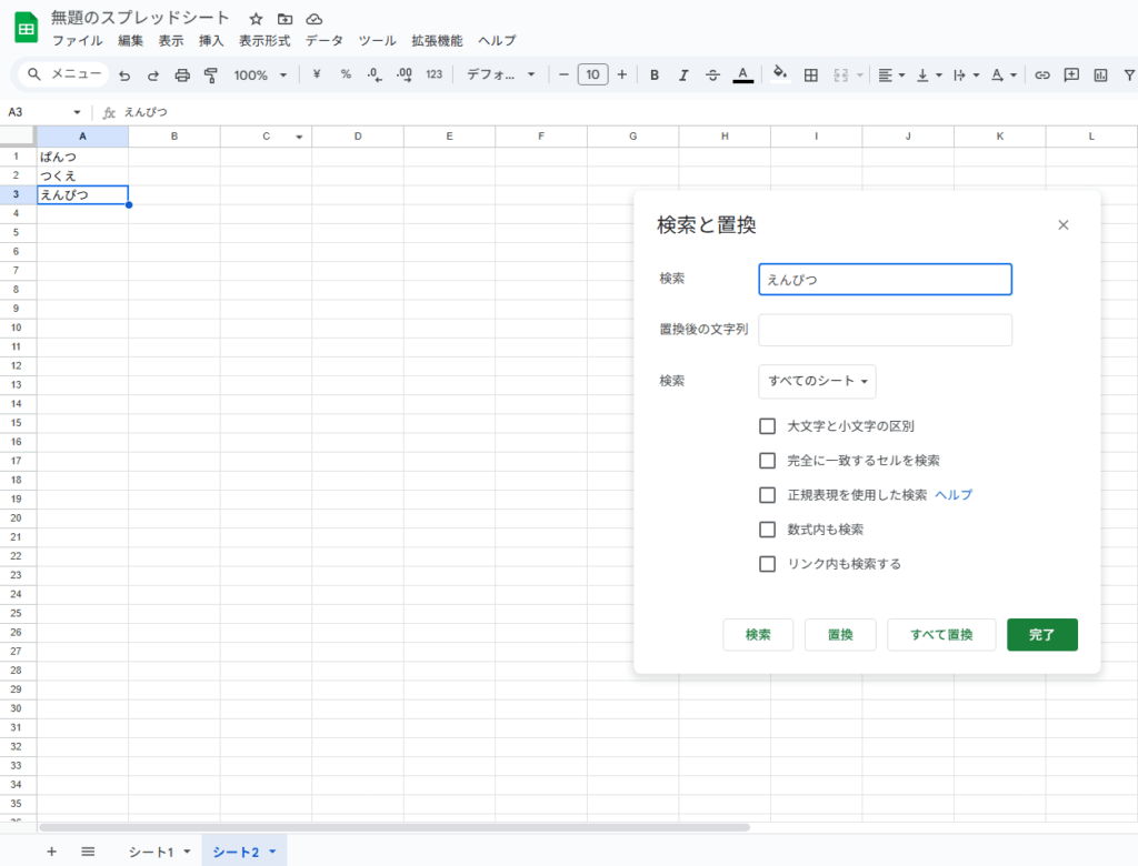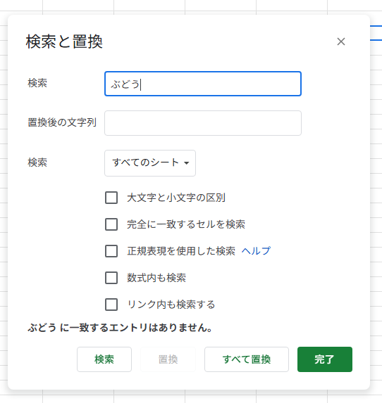 開いているスプレッドシート内(複数のシート間)の単語を検索します。