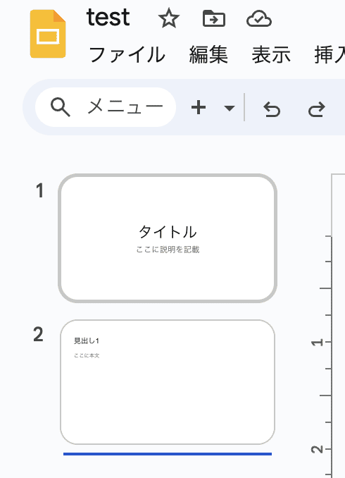 まずは翻訳したいGoogleスライドを用意します。