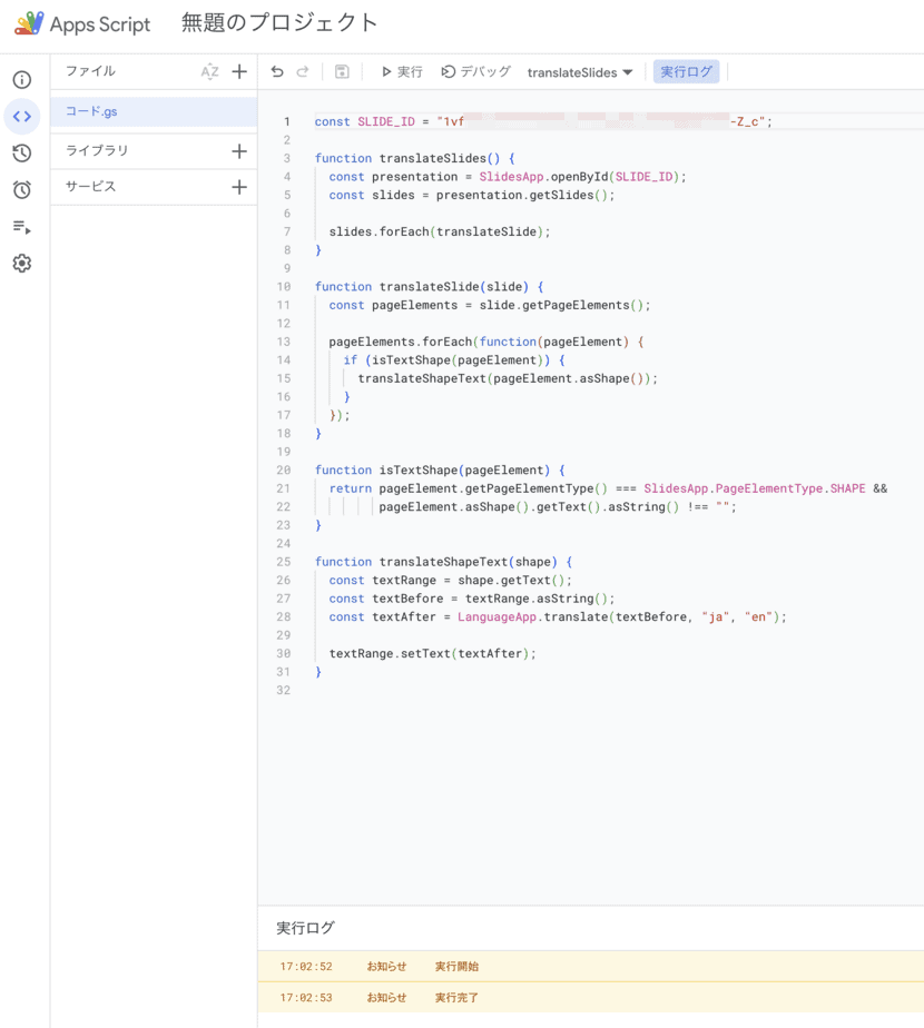 スクリプト(GAS)を使って、スライドの中身を英語に翻訳してみました。