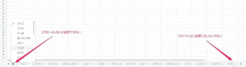 (画像のように、スクロールしないと目的のシートが見つからないことも)