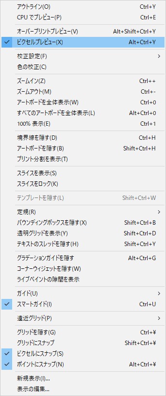 - オブジェクト > ピクセルを最適化 でピクセルにぴったり合うよう調整