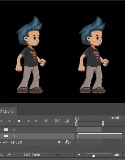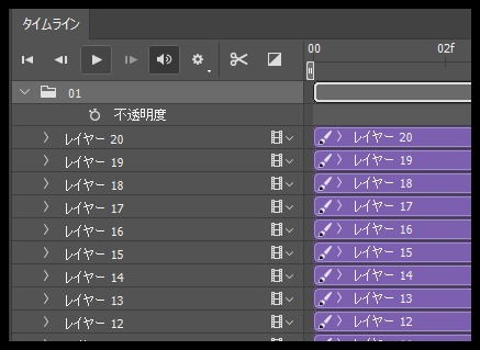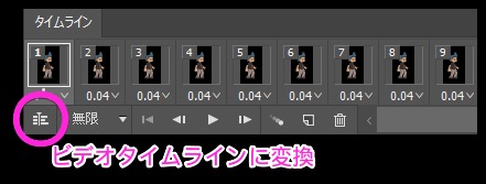 - タイムラインパネル にGIFのフレームが表示される