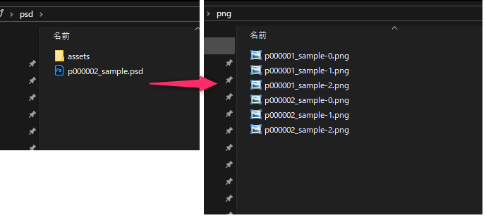 さらにPSDに内蔵されているレイヤー差分も全部書き出したい
