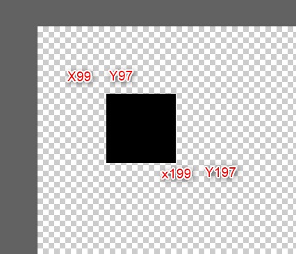 Photoshopの bounds プロパティを使用すると、 選択しているレイヤーの四隅の座標を取得 できます。