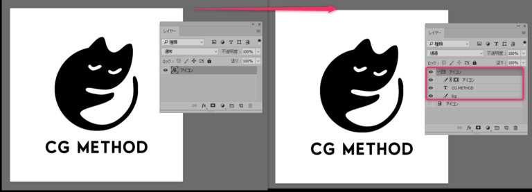 - 元のレイヤー構造を保持したまま、グループで展開される