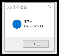 alert("テスト\nHello World");このスクリプトは、実行すると「テスト Hello World」というアラートを表示します。