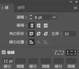 - 「線」→「破線」にチェック を入れて点線を作成