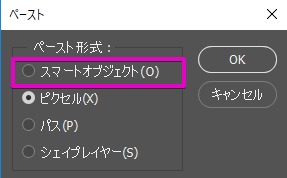- Illustratorのデータを スマートオブジェクトまたはピクセルとしてペースト