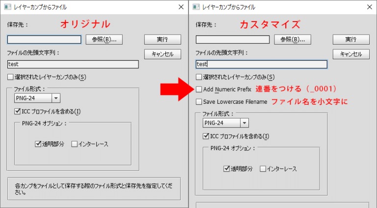 - カスタマイズ版スクリプト を使用すれば、連番のON/OFFや命名ルールの変更が可能