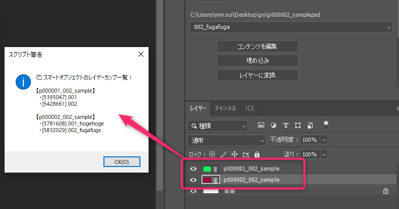 しかしスマートオブジェクトのレイヤーカンプの取得にはAPIが用意されていません。