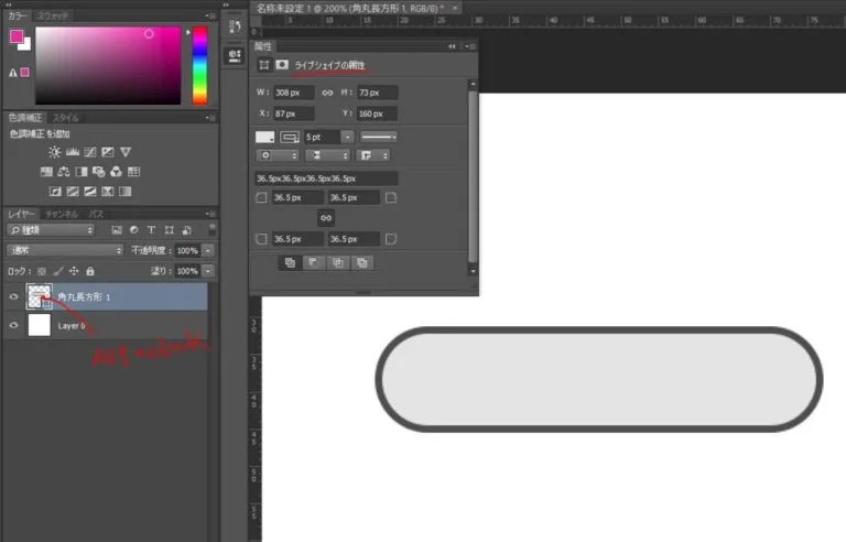 - 「Alt+クリック」 でライブシェイプ属性が再び表示され、サイズや角丸の調整が可能に!