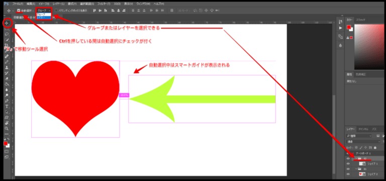 移動ツールを使用してレイヤーを選択する際、手動でUIを操作するのは面倒です。
