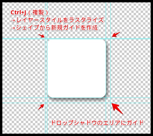 これにより、ドロップシャドウを含む範囲のガイドが引かれます。
