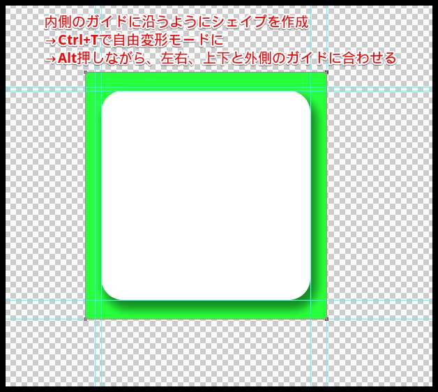 最初に作成したガイドを基に、新たにシェイプを作成します。
