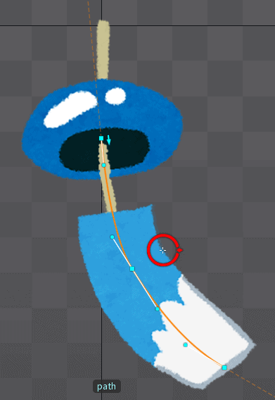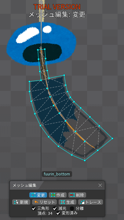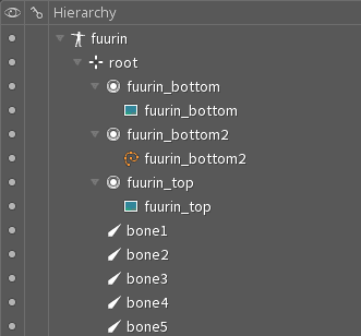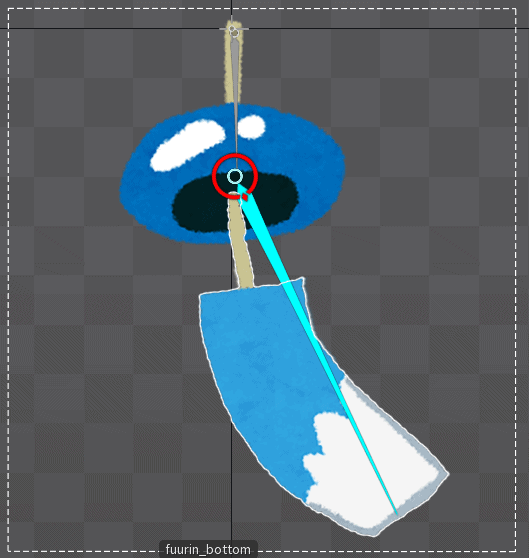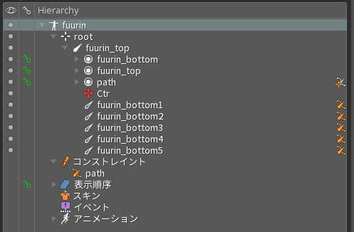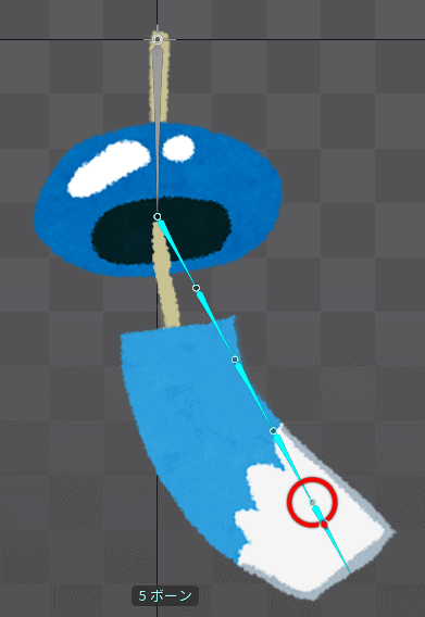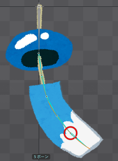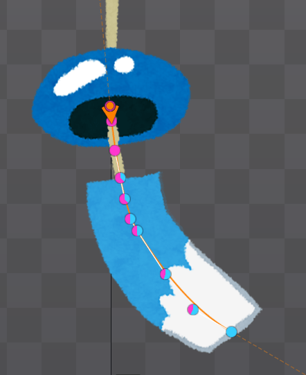 インポートボタンを押した後、風鈴のデータがSpineで再現されます。