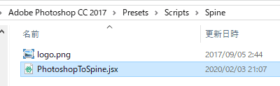 Spine用Photoshopスクリプトのインストール