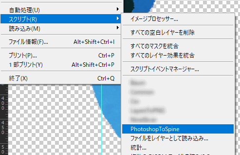 Photoshopの上部メニューからファイル>スクリプト>PhotoshopToSpine