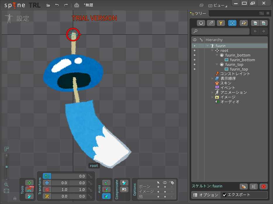繰り返しますが、トライアル版は保存とエクスポートができませんが、全機能使えるのでSpineに興味のある方はこの風鈴揺れをチャレンジしてみてください。