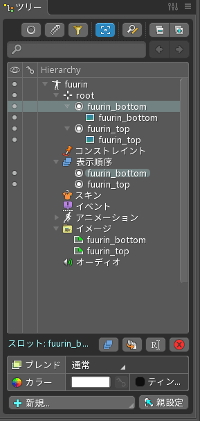 - 「root」と書かれた場所に骨や画像(アタッチメント)を管理する場所です