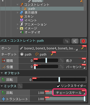 さらにパスの回転設定をチェーンスケールにします。