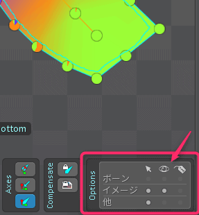 まずパスや骨の表示を下のパネルの目玉ボタンの下のチェックを外して非表示にしてしまいましょう