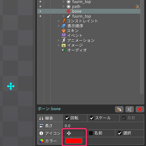 骨をわかりやすい見た目に変えます。「アイコン」と「カラー」を変更しましょう。