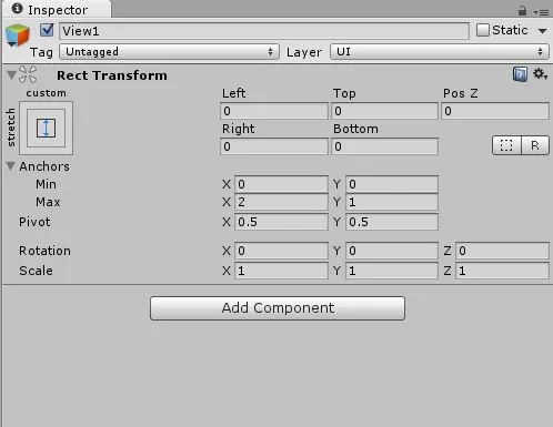 - View1のRect Transform → Anchorsを MIN(0, 0) MAX(2, 1)に変更(右側に画面1つ分拡張)