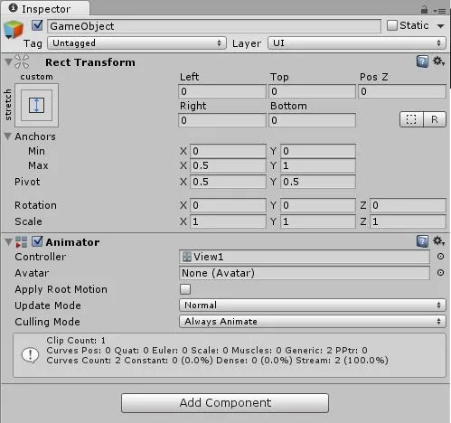 - View1の子のGameObjectのAnchorsを MIN(0.5, 0) MAX(1, 1)に変更