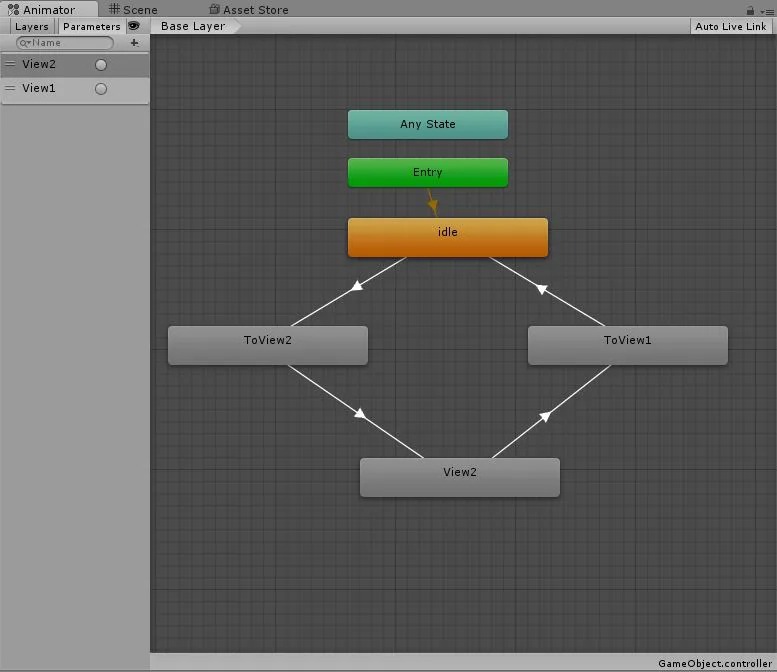 - ParametersタブでTriggerを2つ作成(View1、View2)
