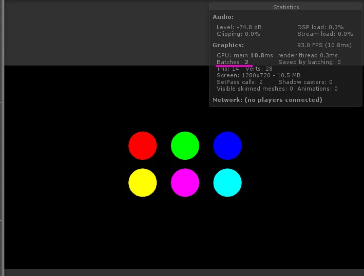 | 描画回数削減 | パッキングによりBatchesとSetPass callsが減少 |