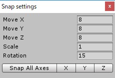 Edit → Snap Settingsでスナップ値を設定(例:8の倍数)